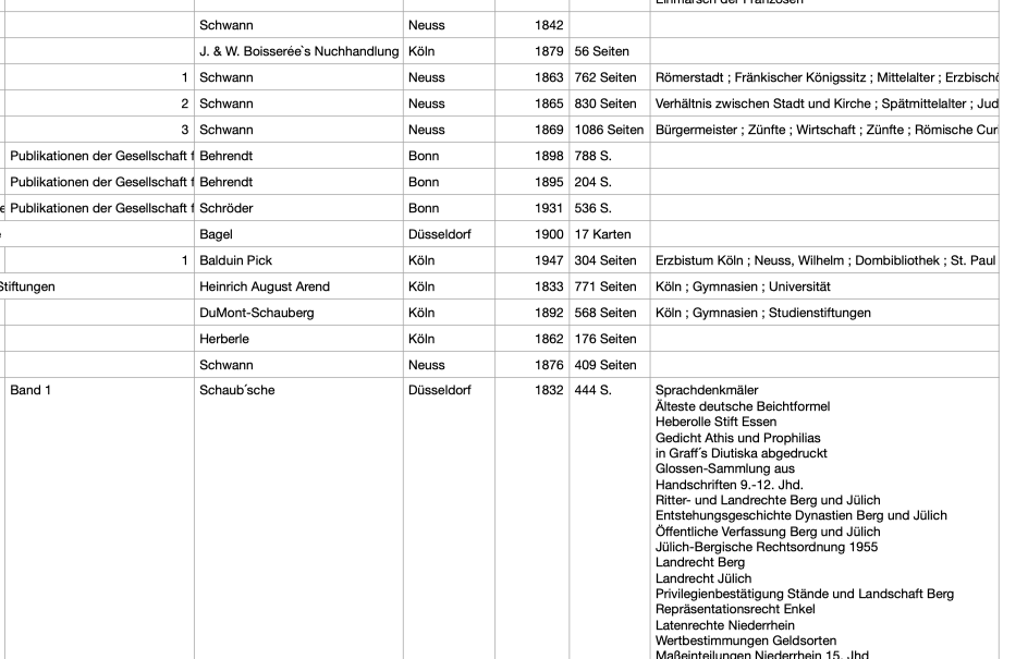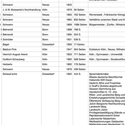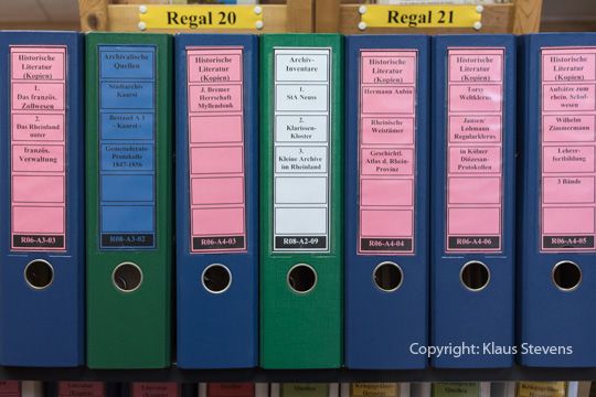 - Kopien von Quellen aus Stadtarchiven der Umgebung und dem Landesarchiv NRW, Abteilung Rheinland in Duisburg (mit Schwerpunkt auf dem 19. Jahrhundert)