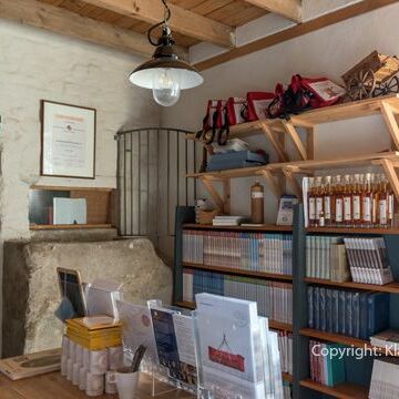 Der Museumsladen, der im Erdgeschoss des ehemaligen Pferdestalles untergebracht ist, hat ein umfangreiches Angebot für die Museumsbesucher.