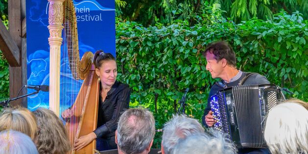 Über „ein volles Haus“ freuten sich Jürgen Rau, Geschäftsführer vom Museumsförderverein Tuppenhof und Anette Maiburg, künstlerische Leiterin vom Niederrhein Musikfestival, denn viele Gäste waren zum Konzert vom Duo Oxymoron gekommen und warteten bei bestem Spätsommerwetter auf den Auftritt der beiden Künstler im Bauerngarten.