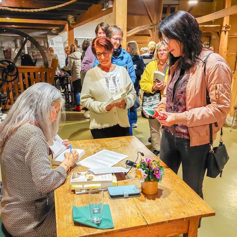 „Ich nulle“, sagte eine gut gelaunte Autorin. Sie meinte damit, dass der 378 Seiten starke Roman ihr zehntes Buch ist. Die ersten fünf Werke waren Krimis, dann schrieb sie Familienromane. Zwei ihrer Bücher schafften es auf die Spiegel-Bestsellerliste und die Resonanz auf das neue Buch im Tuppenhof war so positiv, dass es wieder ein Bestseller werden könnte.