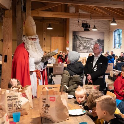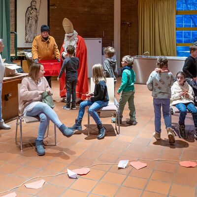 Ein volles Programm hatte der Nikolaus (Franz Geers) bei seiner Tour vom Tuppenhof durch den Ortsteil Vorst. Nachdem er zunächst die Edelknaben bei ihrer Weihnachtsfeier in der Scheune besucht hatte ging es mit der Kutsche zur ersten Station im Neubaugebiet auf dem Parkplatz an der Raiffeisenbank, wo ihn schon rund 80 Kinder und Erwachsene erwarteten. Nicht ganz so voll war es dann auf dem St.-Eustachius-Platz und etwas später vor die Kirche St. Antonius. Dort beschenkte der Nikolaus nicht nur draußen die Kinder, sondern überraschte im Pfarrzentrum auch die Gruppe der zukünftigen Erstkommunionkinder, die sich mit einem Nikolauslied für sein Kommen bedankten.