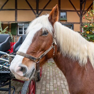 Schon ziemlich dunkel war es an der letzten Station vor der Antoniuskapelle. Da man früher als eigentlich geplant angekommen war, drehte der Nikolaus noch eine Runde mit der Kutsche durch den Linning, bevor er dann vor der Kapelle seine letzten Schokonikoläuse verschenkte und es wieder zurück zum Tuppenhof ging.