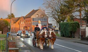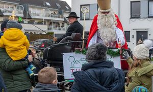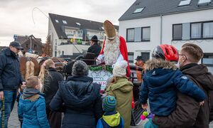 Der Nikolaus vom Tuppenhof fuhr in einer zweispännigen Kutsche durch Vorst und hat an die an sechs Punkten wartenden Kindern kleine Geschenke verteilt.