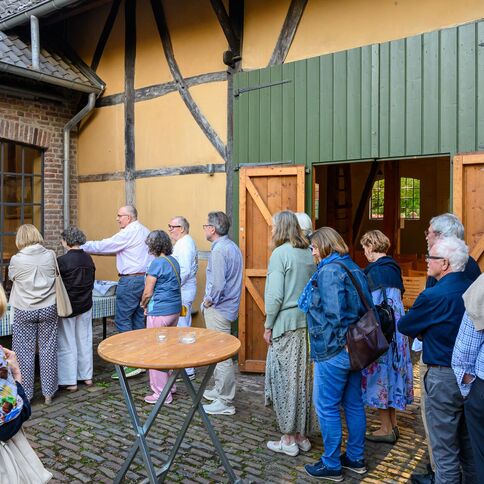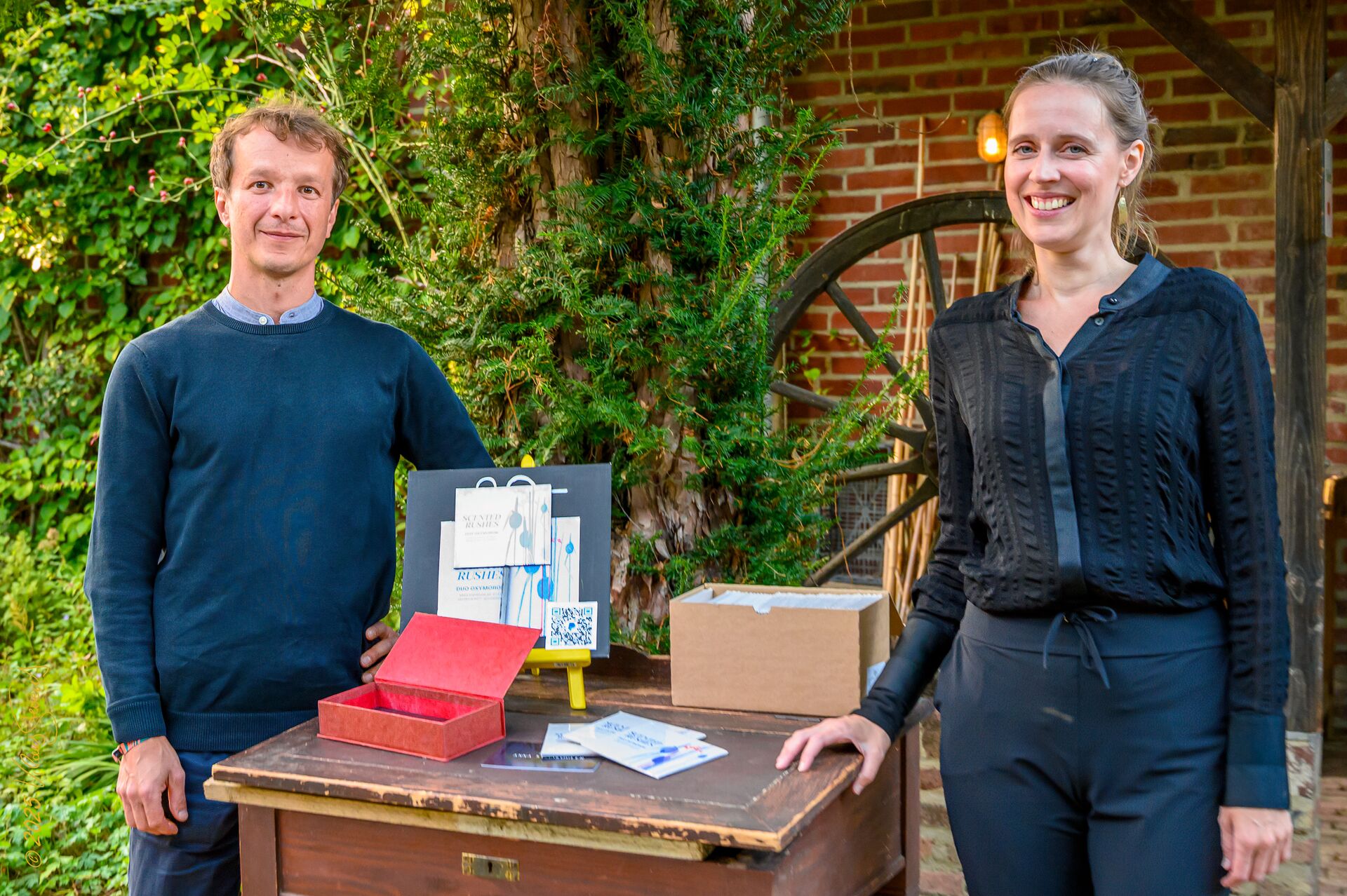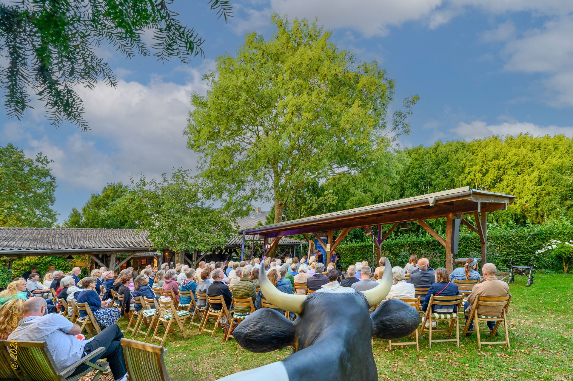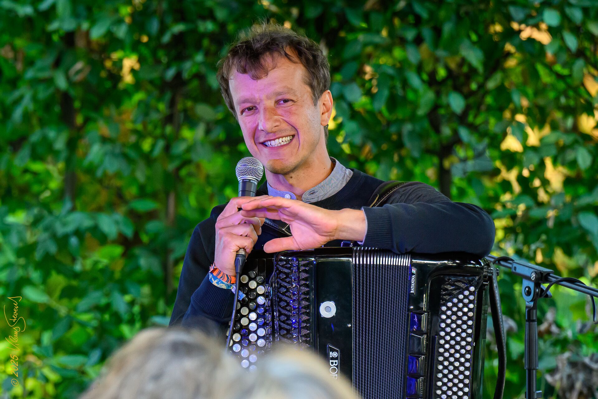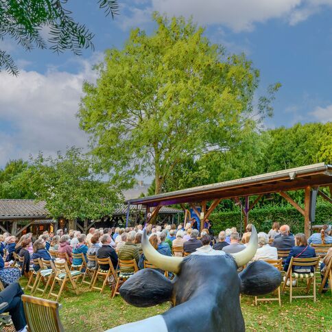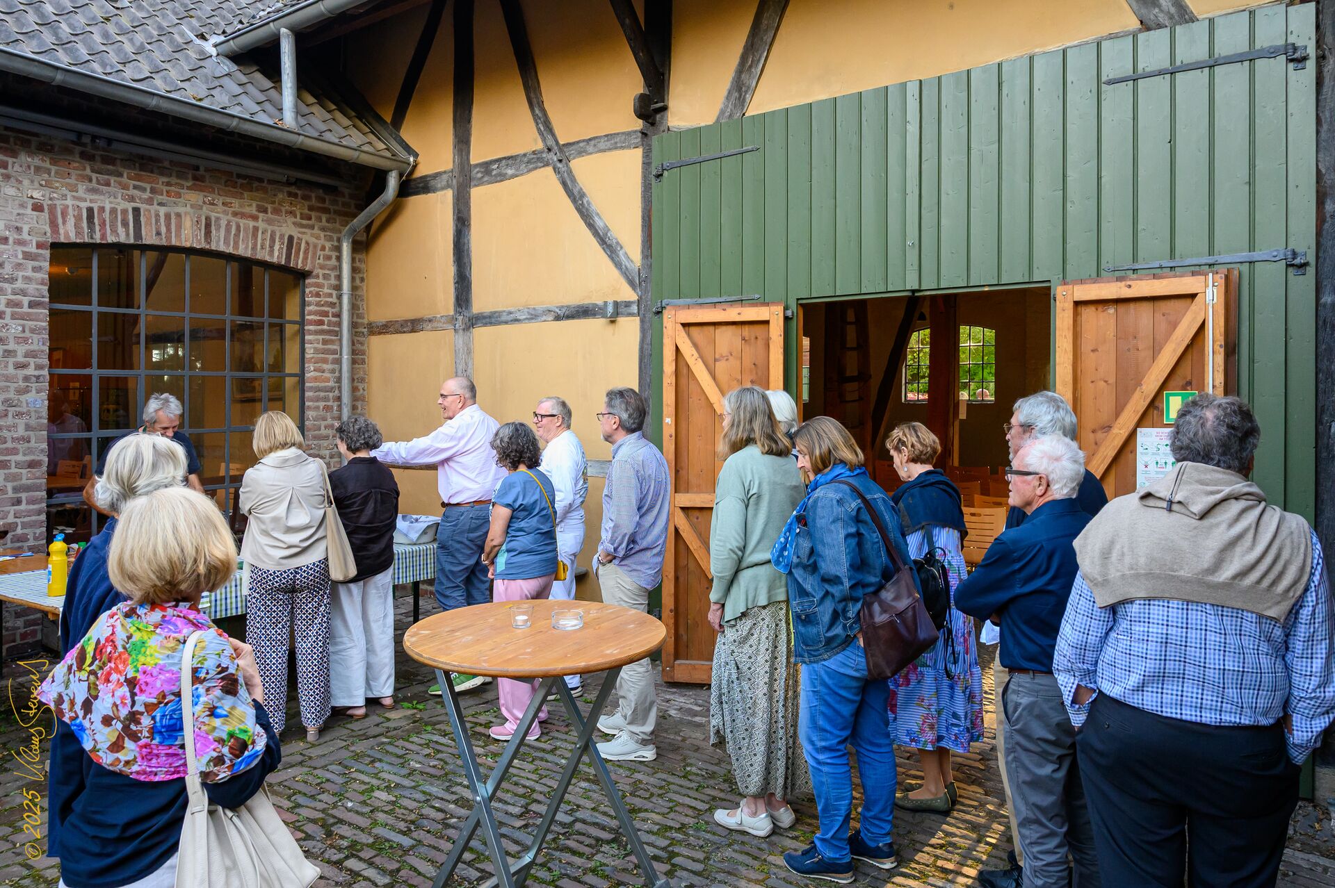 Über „ein volles Haus“ freuten sich Jürgen Rau, Geschäftsführer vom Museumsförderverein Tuppenhof und Anette Maiburg, künstlerische Leiterin vom Niederrhein Musikfestival, denn viele Gäste waren zum Konzert vom Duo Oxymoron gekommen und warteten bei bestem Spätsommerwetter auf den Auftritt der beiden Künstler im Bauerngarten. „Scented Rushes“ – "Duftendes Nichts" hieß das Programm und mit „schaurig-schöner“ Musik von Astor Piazzolla und Maurice Ravel und dem Zusammenspiel von Harfe und Akkordeon in „klirrender Stille“ begeisterten Anna Steinkogler und Valentin Butt und machten ihrem Namen alle Ehre. Seit Jahren verbindet die beiden eine enge musikalische Beziehung und der Wunsch etwas intensiv Emotionales zu schaffen. Das ist ihnen gelungen, im Schein des Mondlichts bei „leuchtender Dunkelheit“ verschmolzen Klang und Stille zu einem einzigen „unendlichen Moment“ und zu einem klanglichen Dialog der beiden Instrumente und offenbarten so den Weg zu neuen Hörgewohnheiten (bh).
