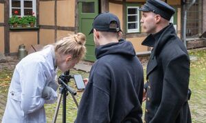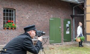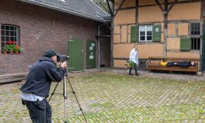 Im Tuppenhof wurden einzelne Szenen im Knechtezimmer, in der Küche und außen vor dem Museum gedreht. Da für den Dreh noch weitere zeitgenössische Außenfassaden gebraucht wurden, gab es auch noch Drehtermine u.a. in Liedberg und in der Düsseldorfer Altstadt. Fertig gestellt sein soll der Film spätestens im März 2021 und versprochen wurde, dass wir dann auch hier auf der Tuppenhofseite einige Szenen des Films zu sehen bekommen werden.