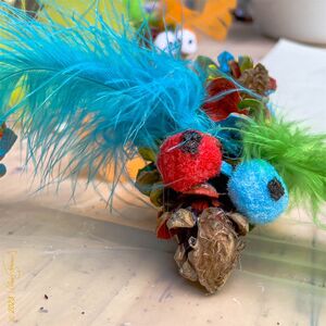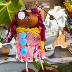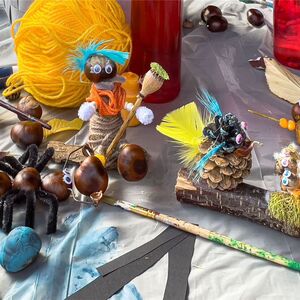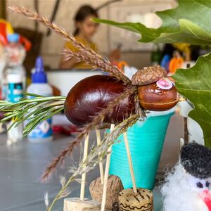 Aus Ästen, Rinden, Eicheln und Kastanien wurden lustige Figuren, kreative Kunstwerke und kleine Monster gebastelt. Damit diese nicht allein ihr Unwesen trieben, kamen noch lustige Tiere und schräge Figuren aus Kastanien, Nussschalen und Eicheln dazu.