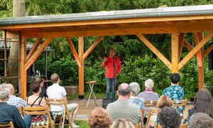Ausverkauft, über 120 Besucher, klasse Stimmung und auch noch tolles Wetter. Was will man mehr? Ach ja, einen witzigen Manes Meckenstock (der vorher bekannte "Lampenfieber ohne Ende" zu haben), der sich aber sichtlich wohl fühlte und sich freute, endlich mal wieder vor "richtigen" Menschen in einem "tollen Ambiente" auftreten zu können.