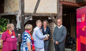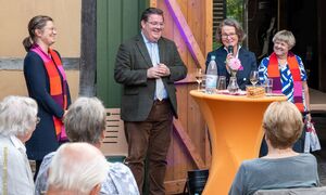 Ina Scharrenbach, Ministerin für Heimat, Kommunales, Bau und Gleichstellung des Landes Nordrhein-Westfalen, war jetzt zu Gast auf dem Vorster Tuppenhof. Im Rahmen des Sommerfestes der Frauenunion Kaarst (FU), der CDA (Christlich-Demokratische-Arbeitnehmerschaft) und der Jungen Union (JU) überreichte die Ministerin gemeinsam mit Ansgar Heveling den Bewilligungsbescheid für den Heimatscheck 2021 an Geschäftsführer Jürgen Rau. Eingesetzt werden sollen die Fördergelder für den weiteren Ausbau von „TuppiTV“, ein Projekt der Ehrenamtler auf der denkmalgeschützten Hofanlage. Produziert werden dabei Filme, bei denen die „Tuppies“ virtuelle Führung durch die einzelnen Räumlichkeiten des Museums anbieten.