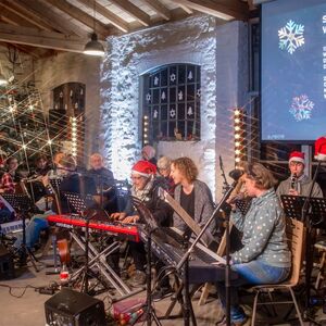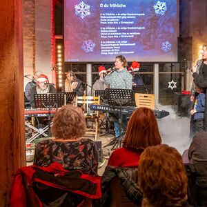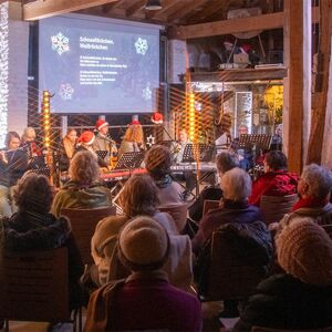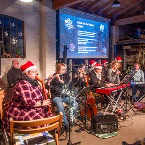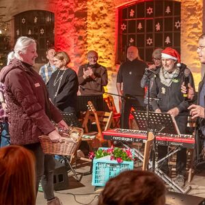 Restlos ausverkauft war die diesjährig letzte Veranstaltung in der denkmalgeschützen Hofanlage des Tuppenhofs im Kaarster Ortsteil Vorst. Wie in jedem Jahr gehörte auch diesmal wieder das „Offene Singen mit Liedern zur Weihnachtszeit“ zu den Höhenpunkten des Kulturprogramms. Musikalisch gestaltet wurde es von der Musikschule Mark Koll, die nicht nur mit einem kleinen Orchester, sondern auch mit zahlreichen Solisten für einen stimmungsvollen Abend sorgten. Beigetragen hat dazu aber auch das Technikteam, angefangen von der Beleuchtung bis hin zum künstlichen Bodennebel und einer Berieselung aus der Schneemaschine. Nach über zwei Stunden sah man nicht nur ringsum zufrieden Gesichter, sondern mit Scheinen gut gefüllt war auch die Schüssel mit Spendengeldern für die Ukraine. Norbert Kallen überreichte als Vorsitzender den Akteuren als kleine Anerkennung für die rundum gelungene Veranstaltung Honig vom Tuppenhof und dankte auch den Ehrenamtlern - den Tuppies – für die gute Vorbereitung des Abends und die Bewirtung der Gäste mit Glühwein und kühlen Getränken.