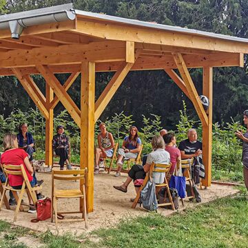 Überall im Gelände stoßt ihr auf Hinweistafeln, die die Kinder der Naturschutzjugend gestaltet haben. Ob Totholzhaufen, Steinhaufen, Hecken oder Kompost – hier wird erklärt, was es mit diesen kleinen Naturwundern auf sich hat. Die NABU-Gruppe hat zudem die alten Obstbäume bestimmt und mit Schiefertafeln versehen. Probier doch mal vom Fallobst – die alten Sorten schmecken einfach himmlisch!