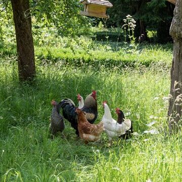 Und dann ist da noch das Federvieh: Eine fröhliche Hühnerschar, die genüsslich im Gehege scharrt oder ein Sandbad nimmt und ständig auf der Suche nach Leckerbissen sind. Ein Wildinsektenhotel und fleißige Bienen sorgen dafür, dass sich auch die nützlichen Blütenbestäuber hier pudelwohl fühlen – und der Naturhonig vom Tuppenhof ist einfach ein Gedicht!