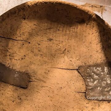 Früher waren große Schalen aus Holz so wertvoll, dass man die Risse mit Flicken aus Metall reparierte.