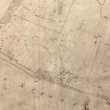 Die Katasterkarte von ca. 1811 zeigt die Anordnung der Höfe im Rottes, die sich wie an einer Perlenschnur entlang der Flottheide aufreihen. Der Tuppenhof ist hier nicht abgebildet. -