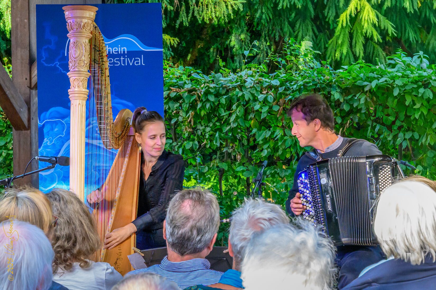 Über „ein volles Haus“ freuten sich Jürgen Rau, Geschäftsführer vom Museumsförderverein Tuppenhof und Anette Maiburg, künstlerische Leiterin vom Niederrhein Musikfestival, denn viele Gäste waren zum Konzert vom Duo Oxymoron gekommen und warteten bei bestem Spätsommerwetter auf den Auftritt der beiden Künstler im Bauerngarten.